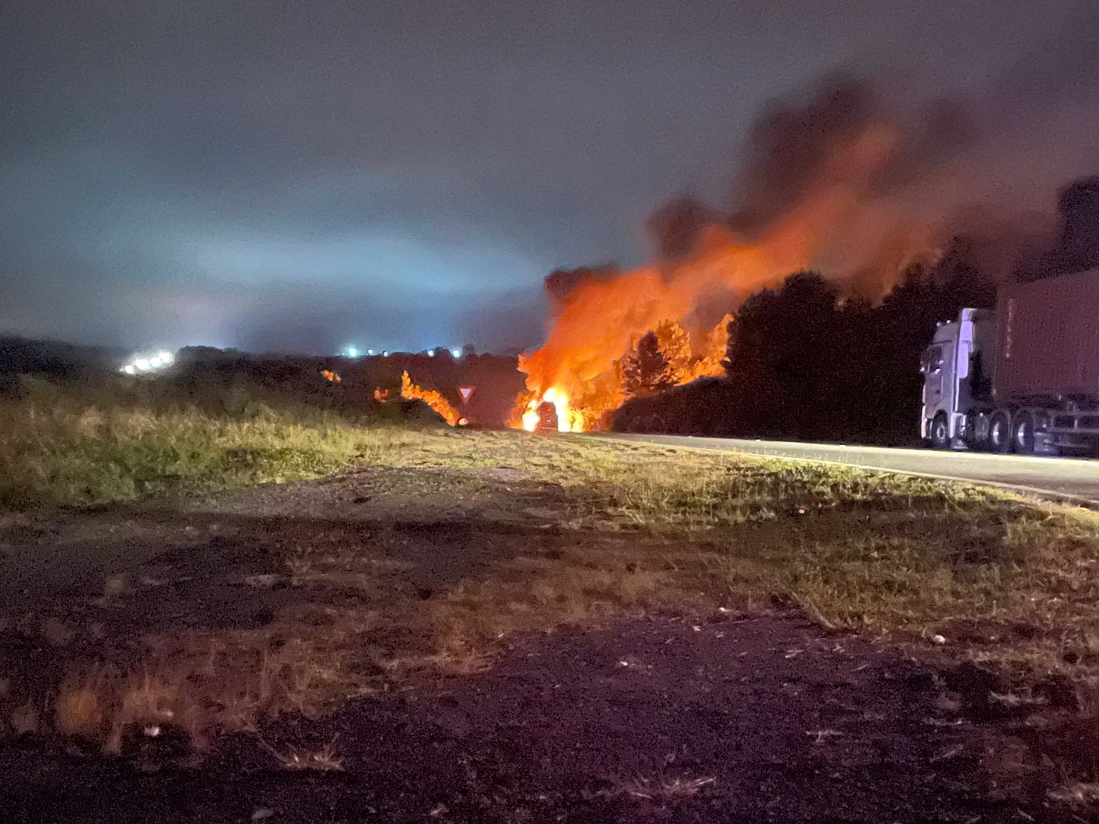 Em outra batida na mesma rodovia, um caminhão pegou fogo. Casos aconteceram na noite de segunda-feira (29). Caminhão pega fogo na BR-376, na região de Palmeira PRF Três acidentes com caminhões foram registrados na BR-376, entre Palmeira e Ponta Grossa, na noite de segunda-feira (29). Em uma da das batidas, uma pessoa morreu. De acordo com a Polícia Rodoviária Federal (PRF), as colisões foram entre 20h e 22h da noite, nos quilômetros 552, 547 e 511. No KM 552, em Palmeira, na pista sentido Curitiba, um caminhão tanque com produto perigoso pegou fogo na rodovia. Houve interdição total e as pistas foram liberadas por volta de 4h desta terça-feira (30). Na mesma região no KM 547, uma colisão envolvendo três caminhões deixou uma pessoa morta. Até esta publicação ir ao ar, a polícia não tinha dado detalhes sobre a identificação da vítima. No KM 511, em Ponta Grossa, um bitrem carregado de soja saiu da pista e tombou na BR-376. Houve interdição parcial da pista, liberada no fim da noite de segunda. Vídeos mais assistidos do g1 PR: Veja mais notícias do estado em g1 Paraná.