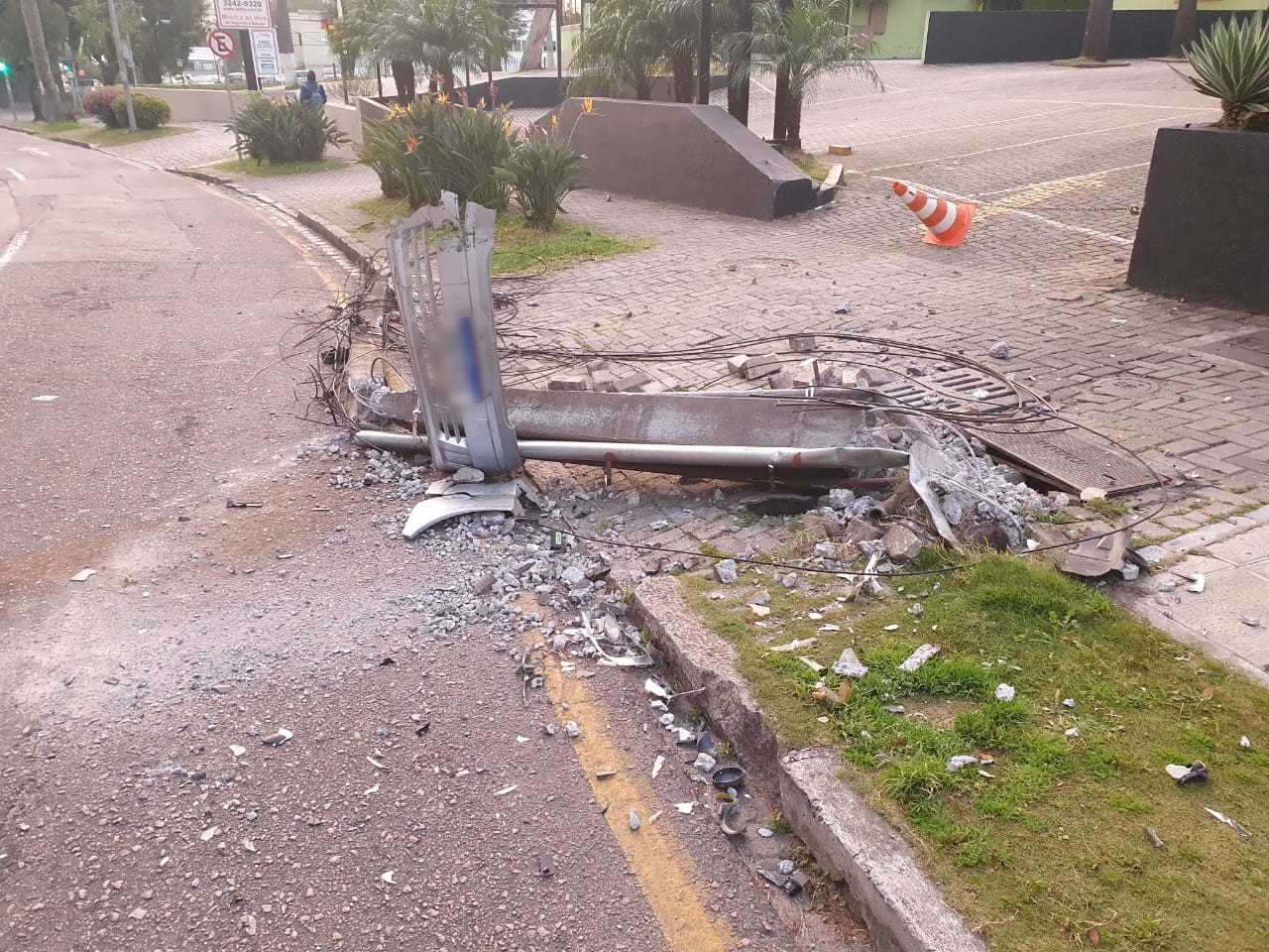 Motorista bate carro contra poste, e moradores ficam sem energia elétrica no Batel, em Curitiba