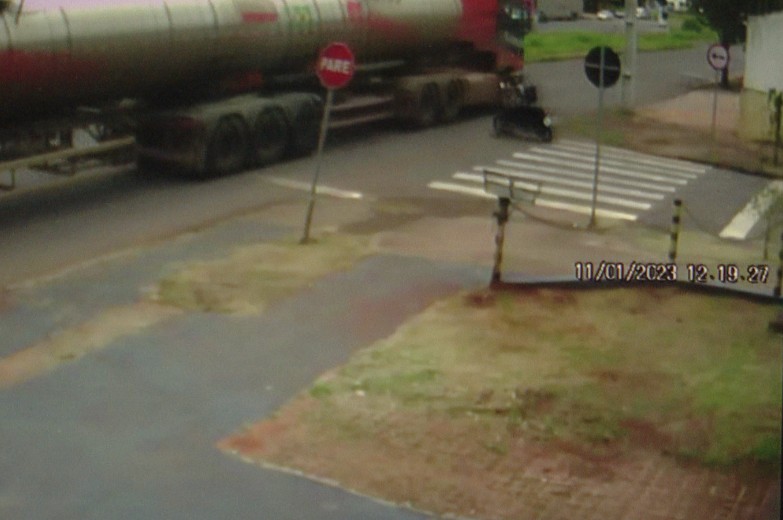 Acidente aconteceu na quarta (11), segundo Semob, depois de motorista da carreta não obedecer sinal de parada. Vítima de 22 anos foi socorrida com luxação no ombro. Motociclista se salva após quase ser atropelado por carreta que furou preferencial Uma câmera de monitoramento registrou o momento em que um motociclista de 22 anos atingiu uma carreta e por pouco não foi esmagado pelo rodado. Segundo a Secretaria de Mobilidade Urbana (SEMOB), o acidente aconteceu porque o motorista do caminhão não obedeceu o sinal de parada. A batida foi no começo da tarde de quarta-feira (11), na marginal do Contorno Sul de Maringá, no norte do Paraná. Nas imagens é possível ver o momento em que a carreta passa direto no sinal de pare, e o motociclista, que cruzava a marginal, atinge o rodado. Por pouco ele não é esmagado. Na sequência, a vítima se levanta e tira o capacete. Rodado se solta de caminhão e atinge carro em calçada de loja em Ponta Grossa; VÍDEO Motociclista se salva após quase ser atropelado por carreta que furou preferencial Reprodução Segundo o Corpo de Bombeiros, a vítima foi atendida consciente e apenas com uma luxação no ombro direito. Por se tratar de um ferimento grave, mas sem risco à vida, conforme os militares, o motociclista foi encaminhado ao Hospital Santa Casa de Maringá. O g1 tenta localizar a empresa responsável da carreta. Leia também: VÍDEO: Suspeitos arrancam postes, furtam fios, torneiras e bebedouros de parque em Maringá, diz prefeitura Teatro Vianinha fica destruído após vândalos invadirem o prédio em Arapongas Local onde motociclista escapa de ser esmagado por carreta reprodução/RPC VÍDEOS: Mais assistidos do g1 PR Veja mais notícias da região em g1 Norte e Noroeste.