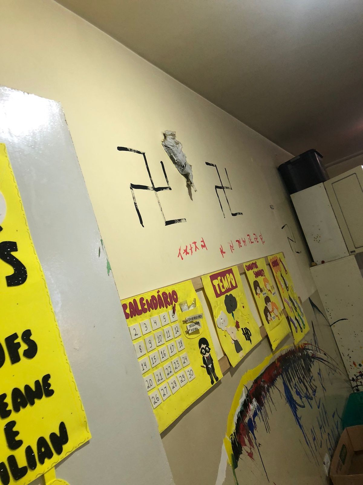 Leia mais: https://g1.globo.com/pr/norte-noroeste/noticia/2023/02/16/vandalos-invadem-creche-e-desenham-simbolos-nazistas-nas-paredes-diz-pm.ghtml