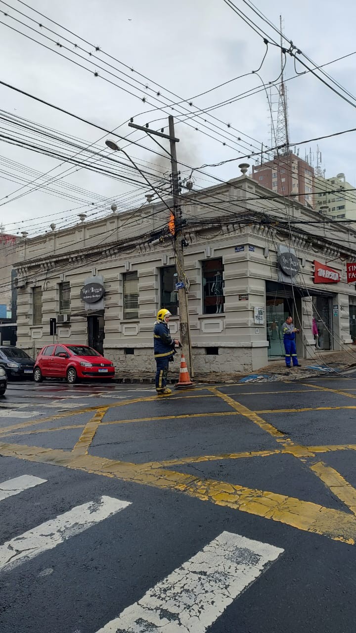 Caso aconteceu no Centro de Ponta Grossa nesta quinta-feira (13) e deixou região isolada e sem luz. Causa ainda é apurada. Explosão e fogo em fiação elétrica assustam moradores em Ponta Grossa Explosões e fogo na fiação elétrica assustaram moradores no Centro de Ponta Grossa, nos Campos Gerais do Paraná, na tarde desta quinta-feira (13). Segundo testemunhas, a situação começou com fumaça e depois explosões consecutivas. Assista no vídeo acima. Segundo os bombeiros, não há registro de feridos. Até a publicação desta reportagem, por conta da situação, ruas próximas ao cruzamento da Rua Dr. Colares com a Rua Santos Dummond foram interditadas. Segundo a Companhia Paranaense de Energia, 3.290 unidades chegaram a ficar sem luz. Até a última atualização, o número era de 452. De acordo com os bombeiros, a suspeita é de um curto-circuito, mas as causas do acidente ainda são apuradas. "A causa exatamente não sabemos, mas houve a queda de um transformador e houve queda de toda a fiação elétrica ao longo da Santos Dummond com vários focos de incêndio, sobre a fiação elétrica inclusive até no posto. Chamas bem elevadas, bem altas", afirmou o major André Lopes. Segundo testemunhas, uma estrutura que ficava acima de um transformador caiu e atingiu o equipamento. Os bombeiros afirmaram, ainda, que a Companhia Paranaense de Energia (Copel) está no local e garantiu não haver riscos. Curto-circuito assusta moradores no Centro de Ponta Grossa; veja FOTOS Explosão e fogo em fiação elétrica assusta moradores no Paraná Foto Autorizada/Ana Paula de Mario Sielski Explosão assusta moradores em Ponta Grossa Foto Autorizada/Jeane Silvane Eckert Explosão e fogo em fiação elétrica assusta moradores no Paraná Foto Autorizada/Ana Paula de Mario Sielski Explosão e fogo em fiação elétrica assusta moradores no Paraná Foto Autorizada/Ana Paula de Mario Sielski VÍDEOS: Mais assistidos do g1 PR Veja mais notícias da região em g1 Campos Gerais e Sul. Acesse nosso canal no WhatsApp